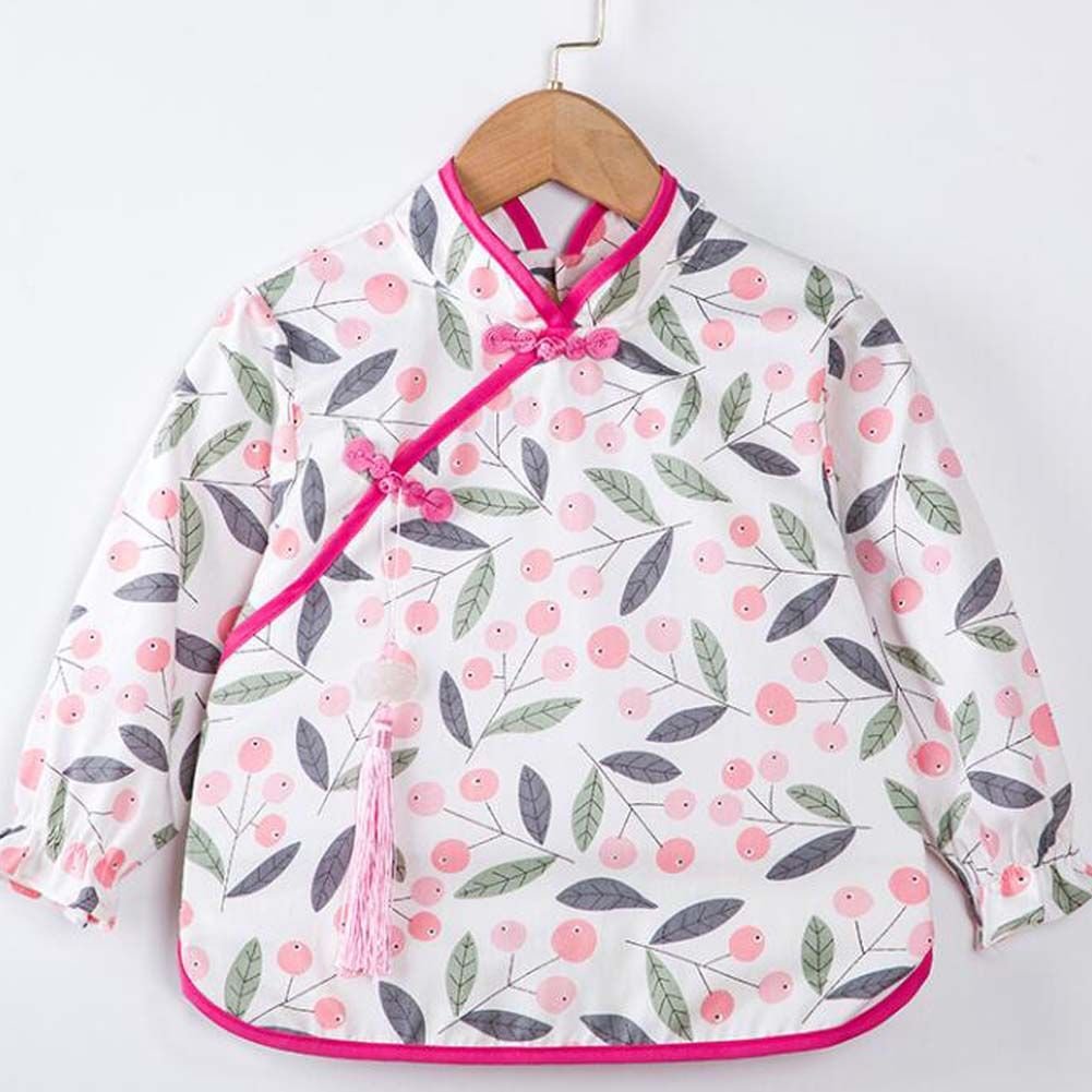 Chinese Style Baby Eating Bibs Inner Waterproof Kids Apron Girls Long Sleeve Painting Eating Smock,Pink Cherry Chinese Style Baby Eating Bibs Inner Waterproof Kids Apron Girls Long Sleeve Painting Eating Smock,Pink Cherry