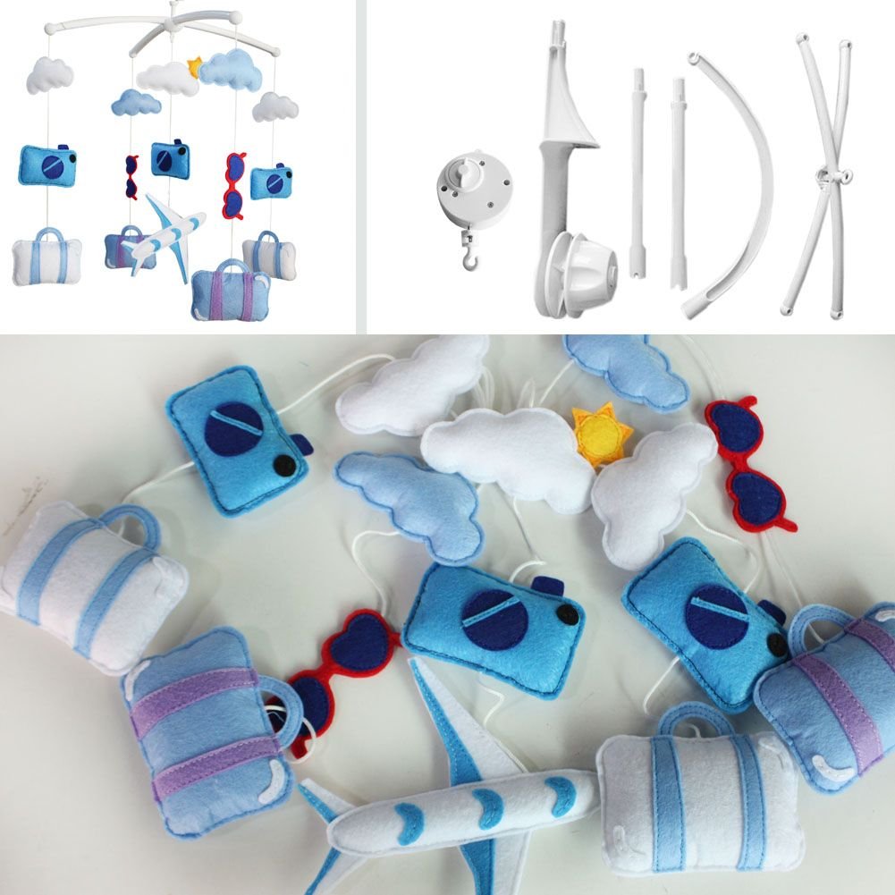 Each package contains a Baby Crib Mobile Bed Bell Holder Arm Bracket and a Wind-up Music Box and toys. This handmade baby crib mobile plays light music to help your baby easily fall asleep. Easy operation and convenient to use, it will rotate while playing music. Each mobile plays Only One soothing pure and light song. Keep baby calm and happy, with this mesmerizing mobile. It is an essential product for baby and nursery. The toys are made from nonwoven fabric. Please note: Can be customized, please contact us about the colors you like, otherwise we will ship the item in original color to you.