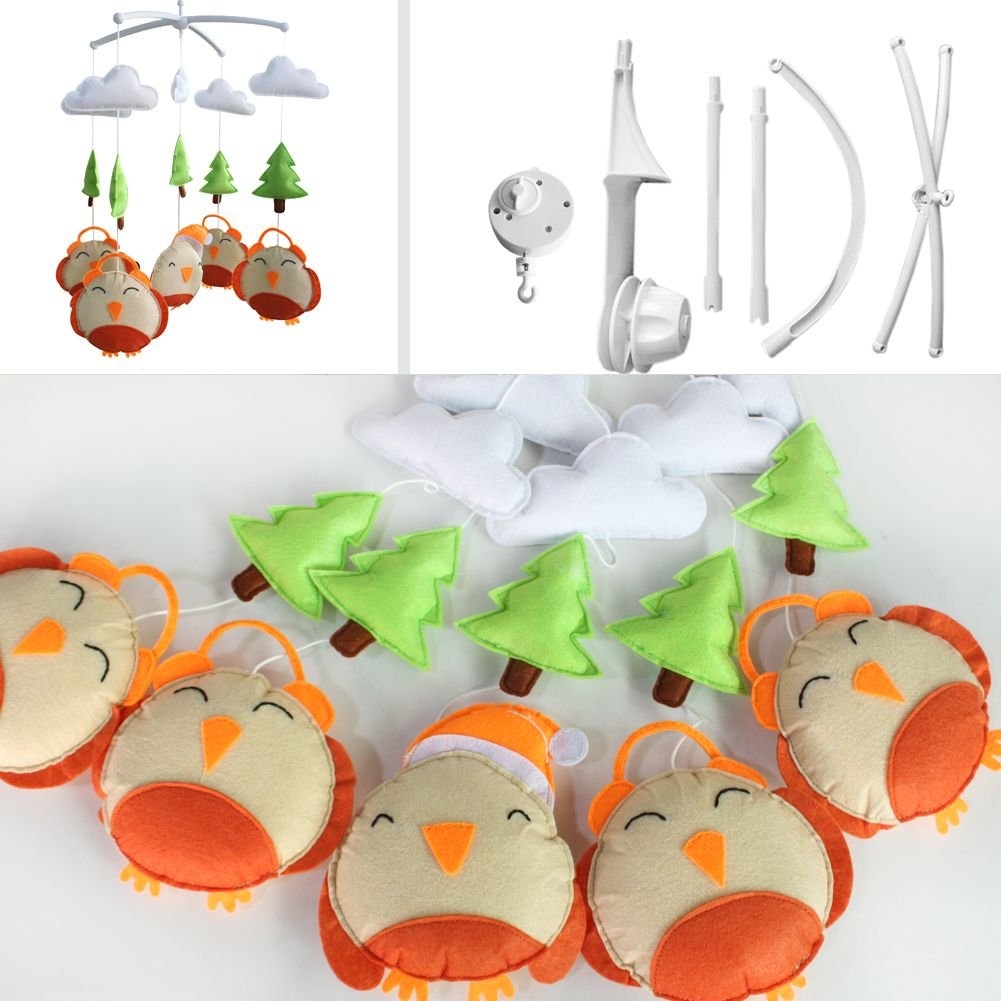 Each package contains a Baby Crib Mobile Bed Bell Holder Arm Bracket and a Wind-up Music Box and toys. This handmade baby crib mobile plays light music to help your baby easily fall asleep. Easy operation and convenient to use, it will rotate while playing music. Each mobile plays Only One soothing pure and light song. Keep baby calm and happy, with this mesmerizing mobile. It is an essential product for baby and nursery. The toys are made from nonwoven fabric. Please note: Can be customized, please contact us about the size you need, otherwise we will ship the item in original size to you.