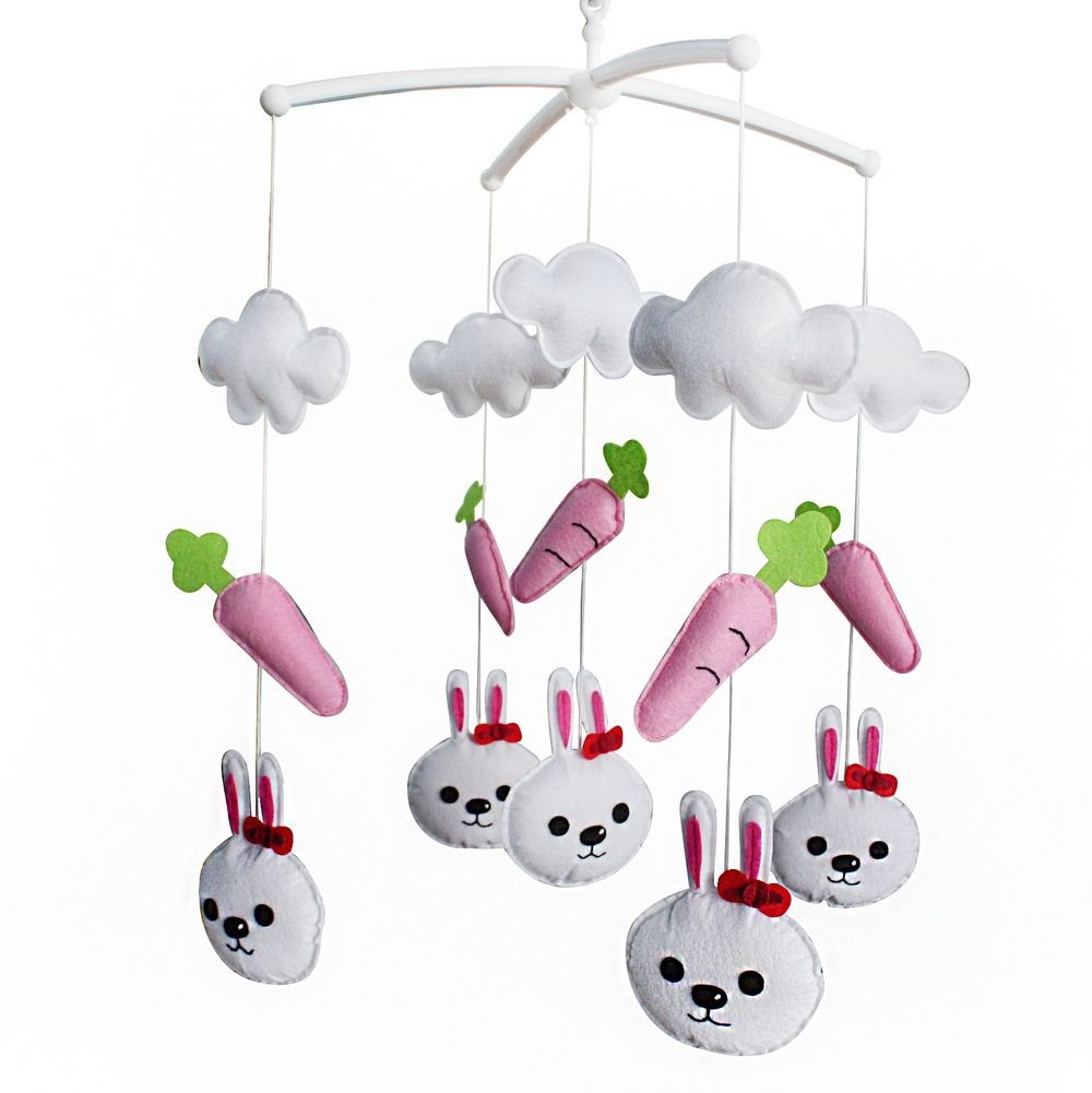 Musical Mobile With White Rabbits, Crib Mobile, Baby Gift Musical Mobile Musical Mobile With White Rabbits, Crib Mobile, Baby Gift Musical Mobile